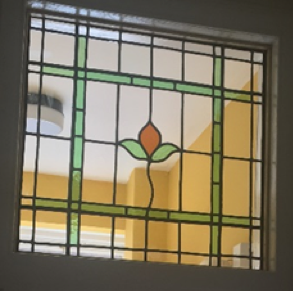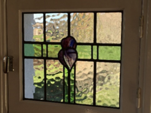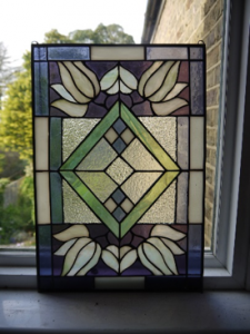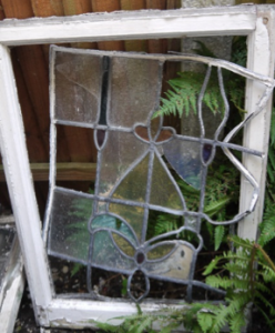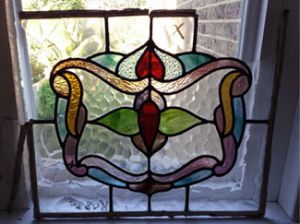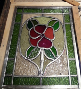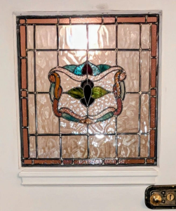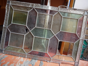 This panel was literally falling apart and some of the glass pieces were broken. The original panel was bigger than what you see here so I was able to replace the broken pieces from another section.